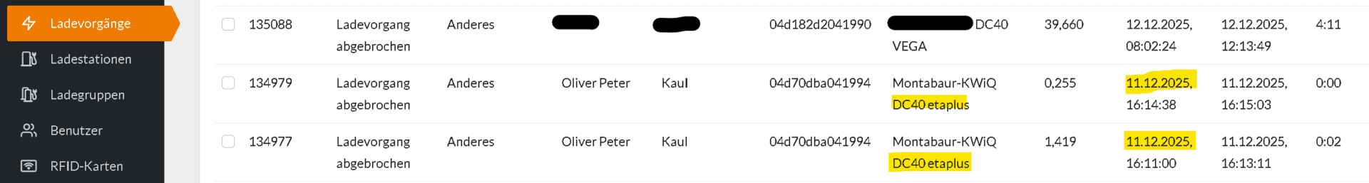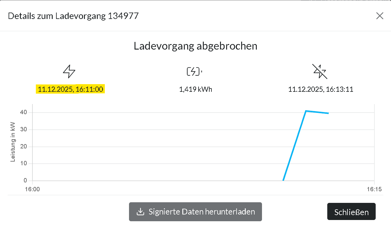 Ladevorgang vom 11.12.2025 am Entwicklungszentrum in München